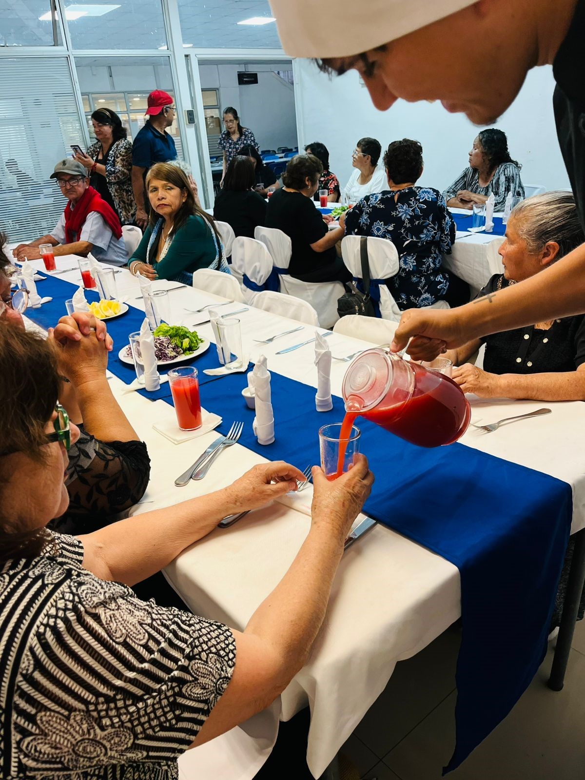 El día jueves 13 de noviembre, la especialidad de Gastronomía, junto al curso IV°B, realizó un almuerzo para 40 vecinos de la tercera edad pertenecientes al Club de Adulto Mayor “Las Azucenas” de Puente Alto. Esta actividad forma parte del compromiso de vinculación con el medio que desarrolla la especialidad, permitiendo a los estudiantes aplicar sus conocimientos en un contexto real y significativo, fortaleciendo sus competencias profesionales y su sentido de responsabilidad social. Al mismo tiempo, la iniciativa genera un impacto positivo en la comunidad, ofreciendo un espacio de encuentro, acompañamiento y bienestar para los adultos mayores.