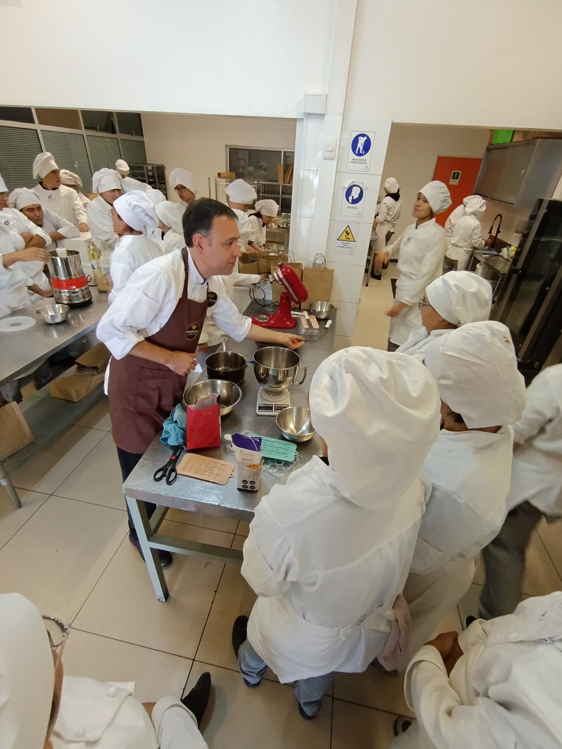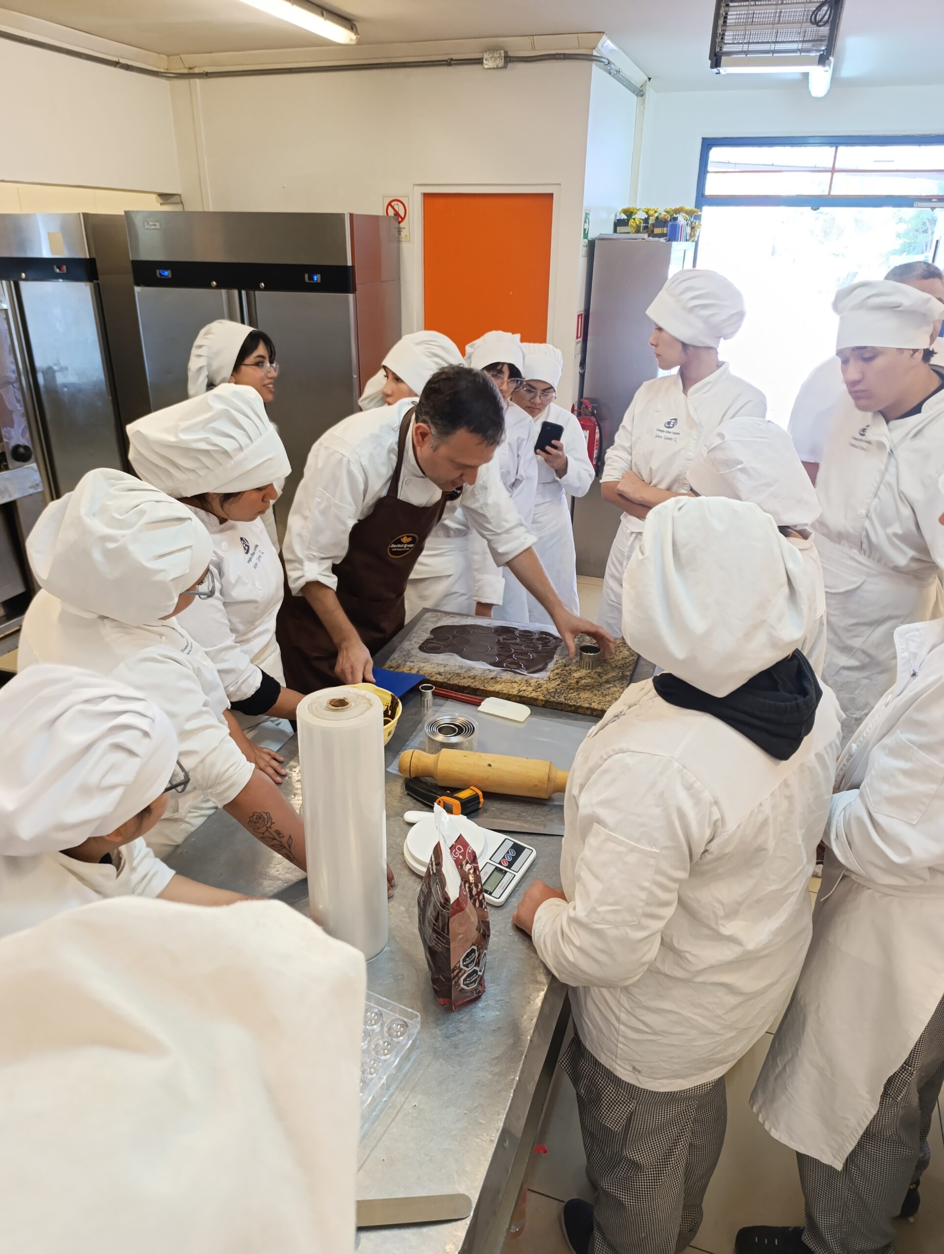 La capacitación estuvo a cargo de dos profesionales ampliamente reconocidos en el ámbito de la chocolatería: los chefs Sebastián Romero y Sergio González, quienes, a través de su experiencia y trayectoria, guiaron a los estudiantes en el conocimiento y aplicación de técnicas actuales relacionadas con la elaboración del chocolate, el manejo de materias primas, los procesos productivos y las tendencias contemporáneas de la chocolatería moderna.