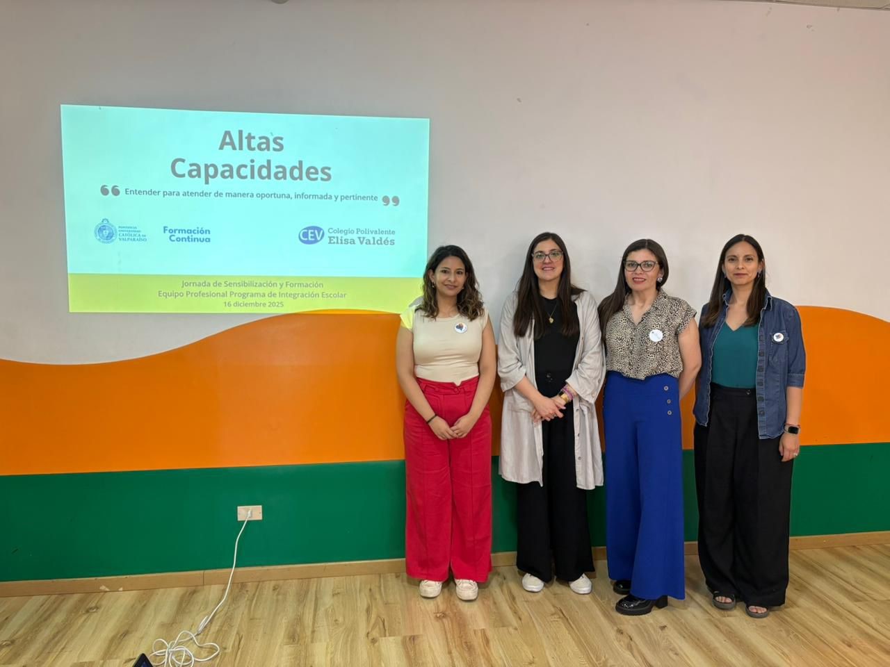La jornada fue realizada por Macarena Navarrete, psicóloga; Katherine Julio, neuróloga infantil; Macarena Velásquez, profesora de música; Lilian Moreno, profesora básica y docente universitaria; todas alumnas del Diplomado de la PUCV sobre Atención a Estudiantes de Altas Capacidades, quienes aportaron una mirada interdisciplinaria y actualizada sobre la temática.